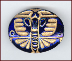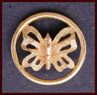 Fabulous molded glass button featuring a butterfly motif. Iridescent purple finish accented with metallic gold. Metal shank. Button measures