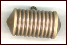 Cylindrical celluloid button with pointed ends. Wire loop shank, Button measures 1 7/16 inches long and 11/16 inches wide. One small scratch (1/8 inch) on one end, otherwise excellent condition. $10 Order #B3