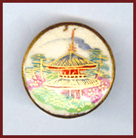Lovely Satsuma porcelain button with a pagoda image and gold accents. Measures 13/16 inch in diameter. Excellent condition. SOLD Order #B81105