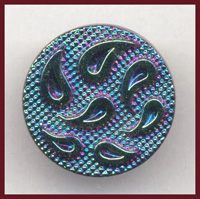 PAISLEY PATTERN BLUE CARNIVAL GLASS BUTTON