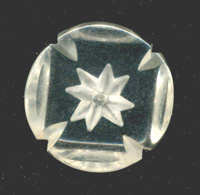 pattern covers this large silvered black glass button. Measures 1 3/8 inches