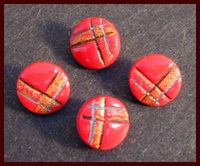 Cute red glass buttons with a plaid design. Self shank. Each button measures 3/8 inch in diameter. Excellent condition. $6 for set of 5. Order plaid