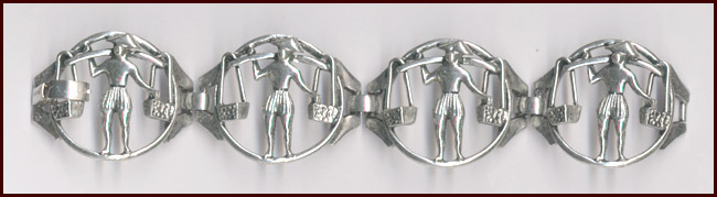 Fun, figural bracelet in silver tone depicting a water carrier. Marked: "SELINI ©". The bracelet