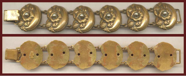 Ornate, embossed metal bracelet with floral motif. Marked: "MAURICE HOLLYWOOD ", a rarely seen mark. The bracelet